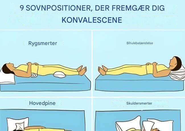 Vidste du, at din søvn kan have lige så stor indflydelse på dit velbefindende som hvor længe du sover? Uanset om du lider af kroniske smerter eller blot føler dig utilpas, kan den rigtige sovestilling gøre en stor forskel. Her er 9 stillinger, der vil hjælpe dig med at lindre forskellige smerter og nyde en afslappende søvn.