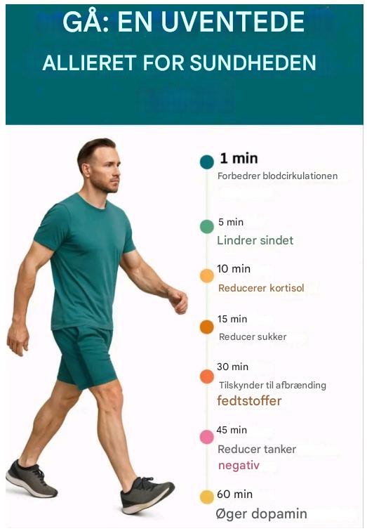 Fra de første skridt hjælper "muskelpumpen" i læggene med at vende venøs tilbage til hjertet. Pulsen stiger en smule, og iltningen i vævet forbedres. -