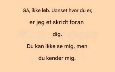"Gå, ikke løbe. Uanset hvor du er, er jeg et skridt foran." Det lyder som et digt – men det…