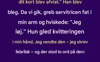 Jeg var på en date. Regningen kom, servitricen kiggede på min date og sagde: "Hr., dit kort blev afvist." …