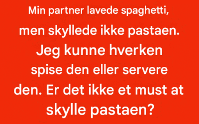 Min partner kogte spaghetti, men sprang over at skylle nudlerne. Jeg kunne ikke få mig selv til at spise det eller tilbyde det til nogen andre. Er det ikke noget, man burde gøre at skylle pasta?