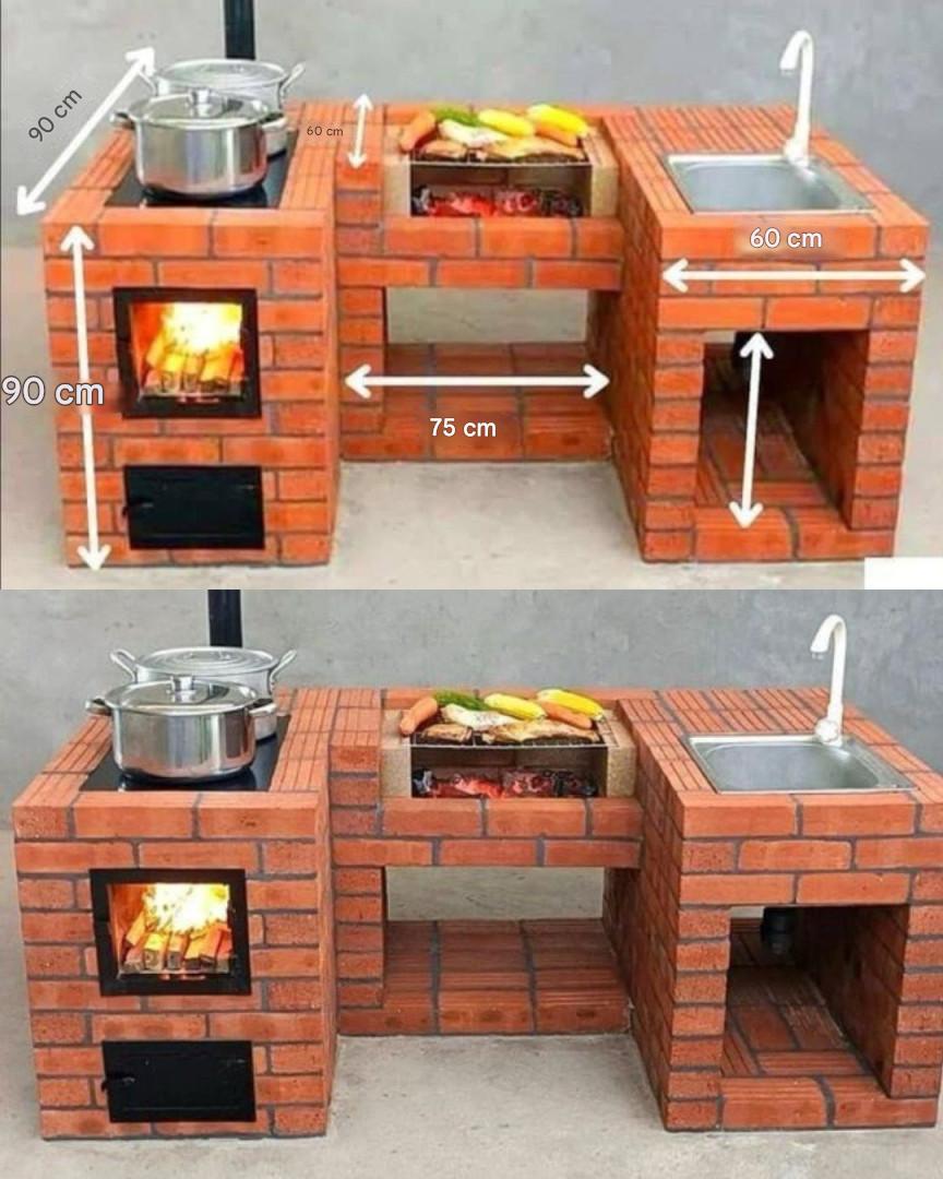 Et udekøkken i haven udfordrer mange udfordringer med madlavning og grillning. Takket være dens robuste konstruktion kan potentialet for farer blive til virkelighed på en enkel, uafhængig og alsidig måde. Denne model kombinerer brændeovne, en grill og en vask i et kompakt design – ideelt til lange sommeraftener med en indbygget pejs eller familie.