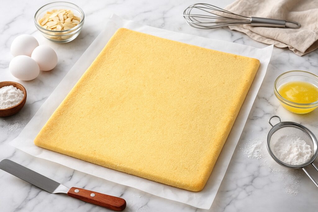 I en skål piskes æg, flormelis og mandelpulver sammen.