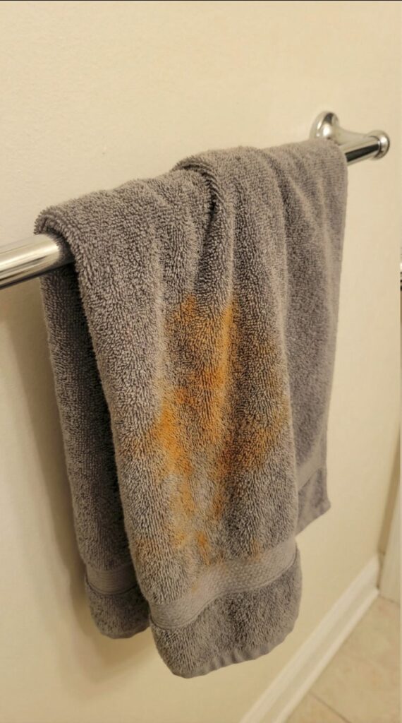 Rustent vand Jernrigt vand er en almindelig synder. Når jern oxiderer, kan det efterlade orange eller rødbrune pletter på tekstiler - især på hvide eller lyse håndklæder.