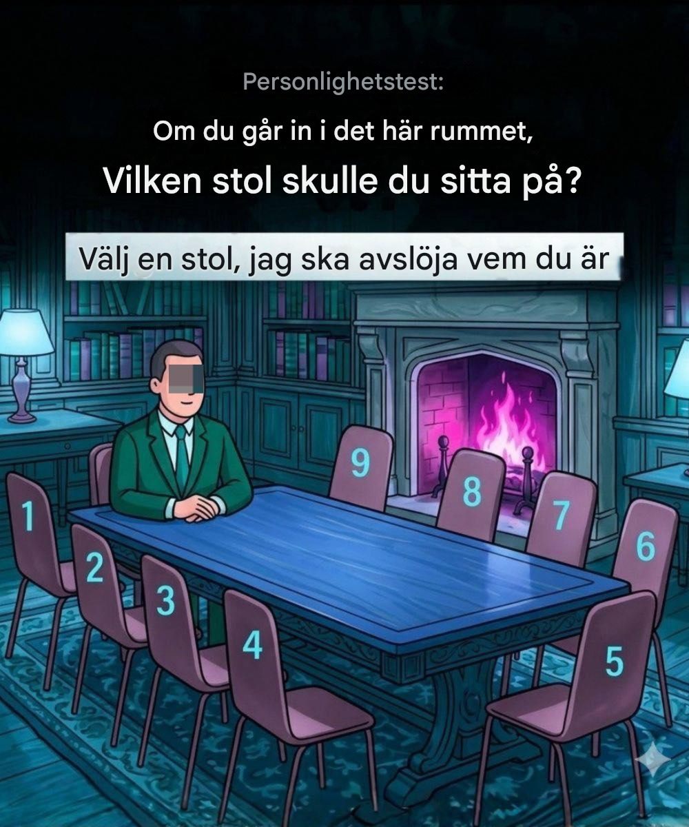 I denne simple test går du ind i et rum med et langt bord, en tændt pejs og ni stole. Én person sidder allerede. Spørgsmålet er: hvilken stol ville du vælge?