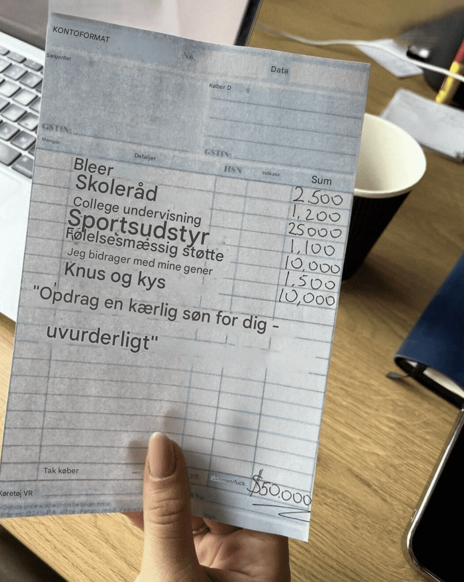 Festen gik vidunderligt. Vi grinede, skålede og fortalte historier, der fik os begge til at rødme. Til min overraskelse opførte Laura sig perfekt. Hun grinede på de rigtige tidspunkter, roste de korte ribben, kaldte dem "overraskende møre" og hjalp endda med at rydde op af tallerkenerne. Da gæsterne gik, trak hun mig til side og rakte mig en elegant elfenbenskuvert.
