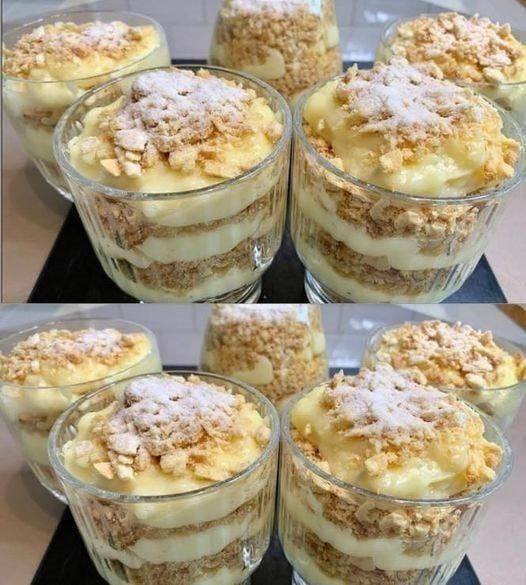 Kom 2 spiseskefulde sandkrummer i glas eller kopper.