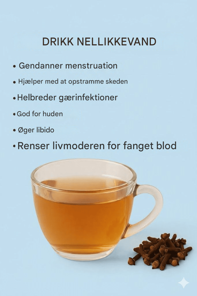 Det sænker blodtrykket... hvis du har forhøjet blodtryk, køber jeg bare nelliker, koger noget vand og lader det trække i det varme vand, indtil det køler af, og drikker det derefter.