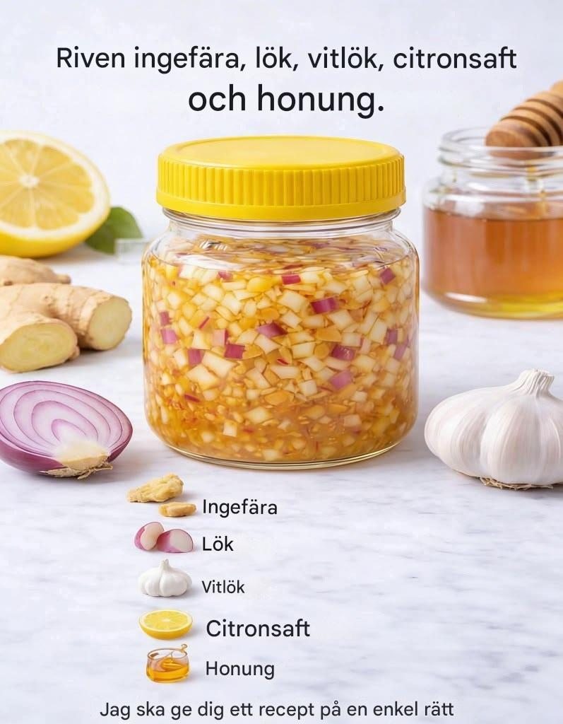 Kombinationen af ingefær, løg, hvidløg, citronsaft og honning er et klassisk husråd, der længe har været brugt til at understøtte immunforsvaret. Ingredienserne er enkle, naturlige og kendte for deres sundhedsfremmende egenskaber.