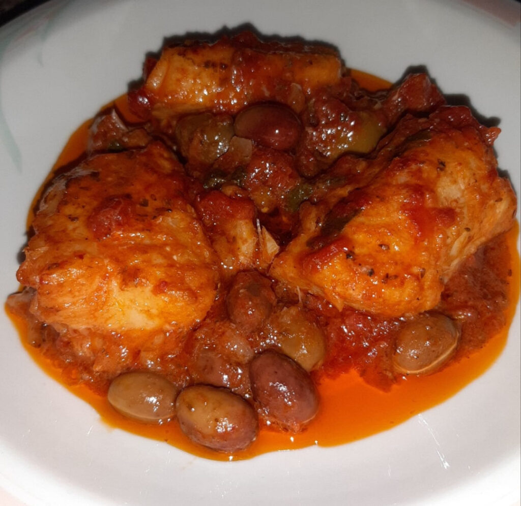 Torsk Pizzaiola-stil med hemmalavede oliven